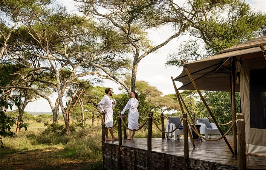 /Conheça a majestosa paisagem de planícies de inundação da Tanzânia. As pradarias, colinas e baobás gigantes do Parque Nacional de Tarangire atraem um impressionante elenco de animais no início da estação, em junho. O Sanctuary Swala Camp fica no coração deste reino animal. Um acampamento de luxo sofisticado é o mais recente a ser anunciado no extenso programa de investimentos do Sanctuary Retreats.